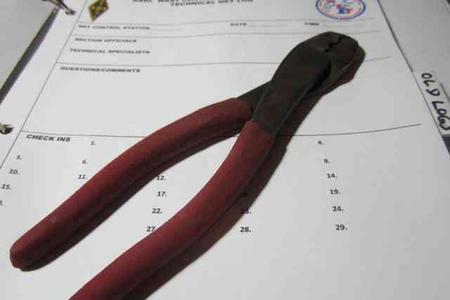 Here is a shot of the basic manual crimper which is much less expensive than the fancier one. The shot below shows a closeup of the jaws. The opening to the right in the lower picture is for the 15 amp and 30 amp contacts and the opening to the left of that one is for the 45 amp contacts. The small opening to the far left is used to finalize the crimp so it fits in the housing properly. Of course one still has to make sure that the contact portion is aligned with the crimped portion otherwise the contact will not fit in the housing. Anderson PowerPole has a very informative web site that demonstrates the proper technique very well.